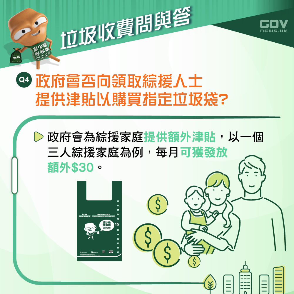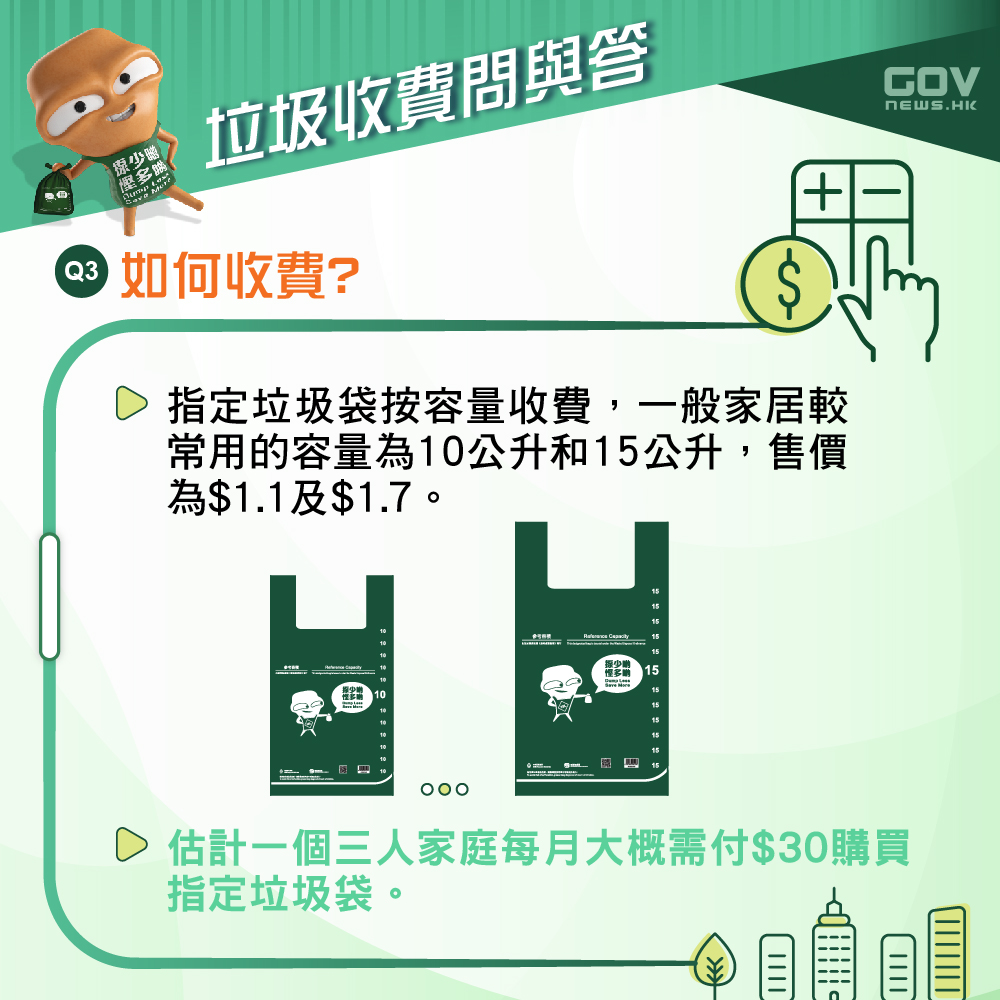 政府会否提供津贴?指定垃圾袋零售地点?收费详情是怎样?市民具体又要做什麽?政府今日(18日)特意在社交专页“添马台”上传多张图片,助市民了解更多垃圾收费详情。