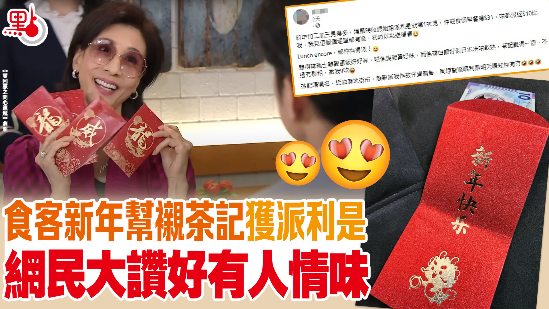 农曆新年有不少食肆餐厅都会收取“双计”或“三计”,不过有网民日前在社交平台分享,新年期间到茶餐厅食早餐,竟获收银员派利是,而且“Lunch encore,都仲有得派!”,感到十分惊喜。不少网民都大讚该店“好有人情味”、“好窝心”。