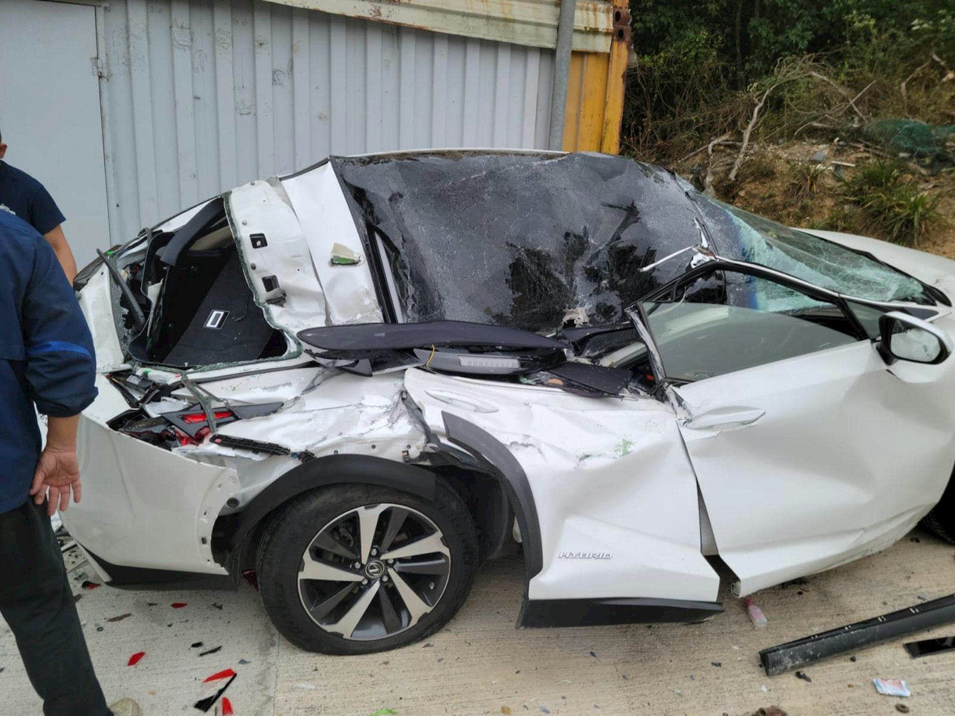 粉岭文锦渡发生交通事故。今日(29日)下午网上流传一条闭路电视录影片段,显示昨日(28日)早上10时36分,一辆货柜车沿文锦渡路行驶,右转入一个露天货仓时,货柜车失控向左翻侧,犹如泰山压顶般砸中一辆停泊在路旁的白色私家车。私家车车顶及右边车身严重损毁,天窗玻璃碎裂,形同“压扁”。
