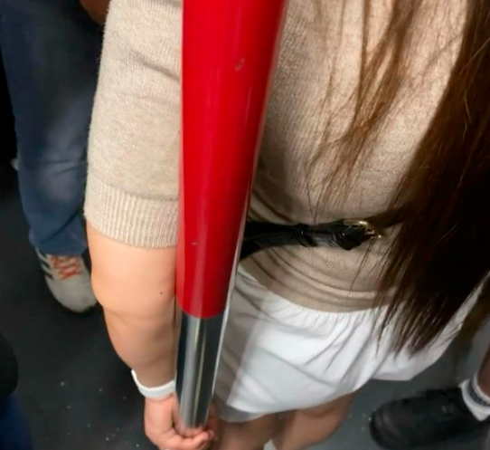 他提醒大家在乘搭港铁时,请不要将整个身体挨在扶手之上,并说:“港铁上本来就很拥挤,这个东南亚妹子整个人贴在扶手竿上,其他人怎么扶!”
