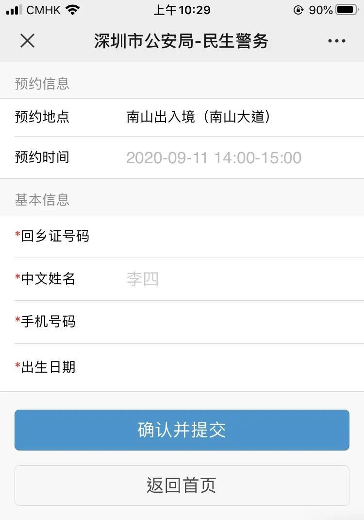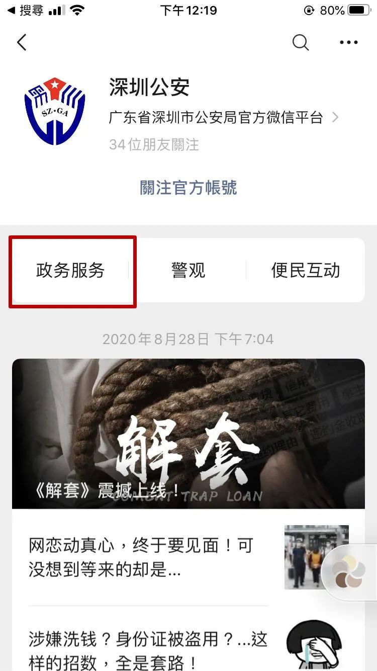 在内地办理回乡证可以先在网上预约,搜索当地公安系统的微信公众号,预约办理的时间和具体地点,以深圳为例。