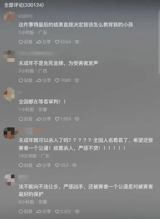 也有网友担心法律对未成年人的保护会让凶手逃离罪责,希望法律层面能够针对这种恶劣事件进行严惩!