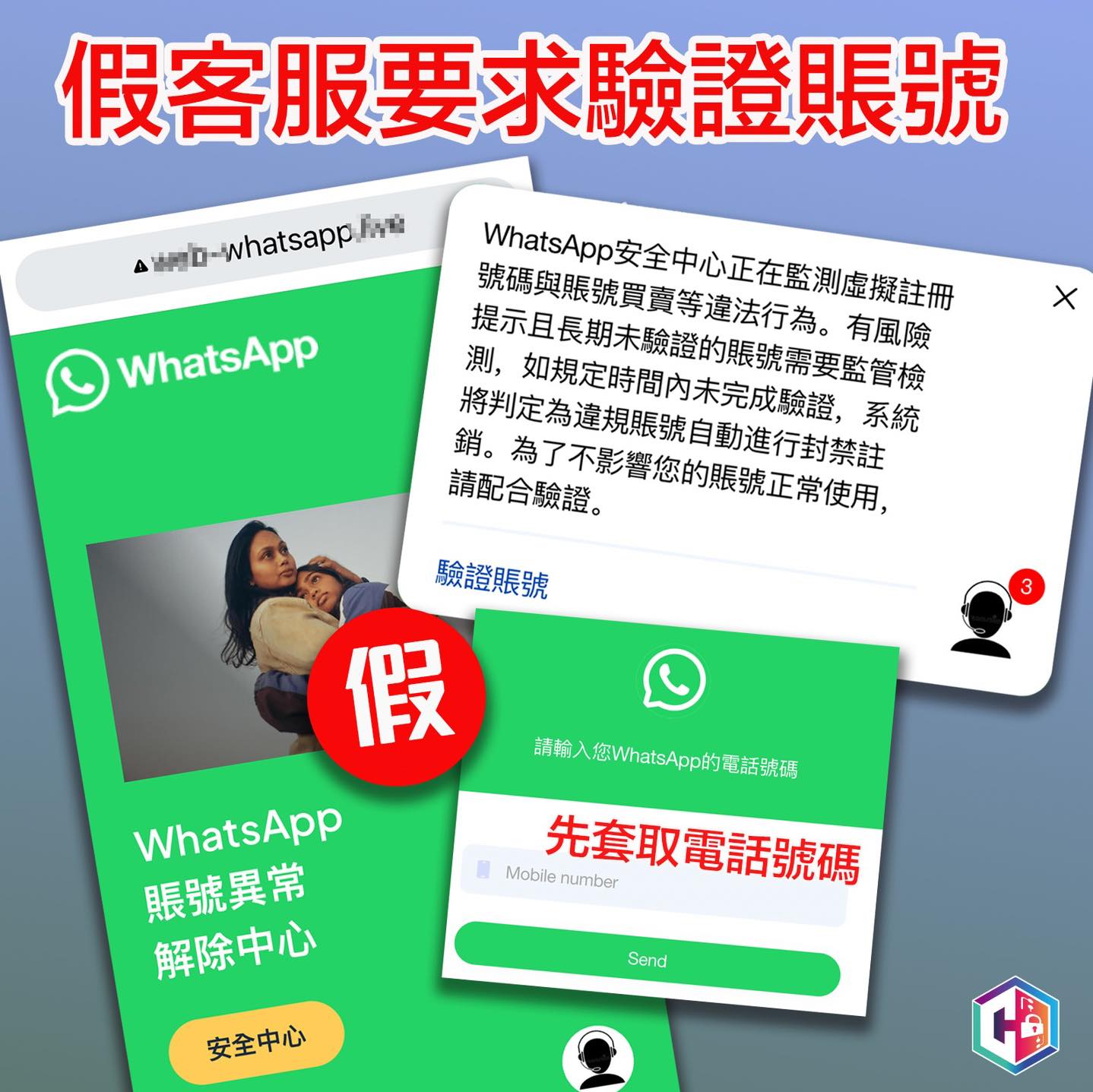 网络骗案层出不穷。警方防骗社交专页“守网者”今日(22日)表示,近日又有骗徒广发钓鱼短讯,声称用户的WhatsApp户口未验证,并附上假网站连结,威吓如不进行验证,帐户将会被注销。当用户按下连结进入WhatsApp假网站后,假客服会以协助验证帐户为藉口,逐步骑劫用户帐户。
