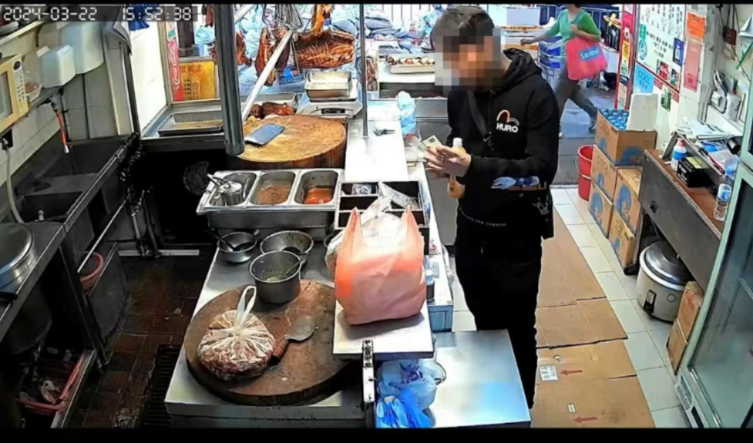 筲箕湾发生窃案。近日(22日)下午,一名男子施然进入金华街21号地下一间烧味舖,偷走柜枱6,000元现金后逃去。店方事后报警,并将闭路电视片段放上网缉贼,可见一名手持樽装饮料、身穿黑衫黑裤的男子入店后左右张望,趁无人为意时两度取走钱箱内的现钞,离去之时又食髓知味折返,第三度取走钱箱钞票,最后更大胆拉开抽屉,掠走一大叠现钞才离去,偷窃全程约45秒。