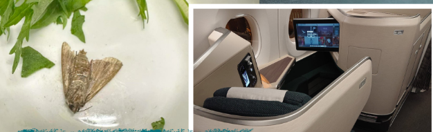 该名网民在社交平台fb群组“飞行里数&平机票实验室”发文,指一家四口于本月16日乘坐国泰CX138商务客位,由澳洲悉尼返回香港。家人进食沙律时食到一隻完整大飞蛾,随即引致作呕及胃痛,其后两天都不能进食。