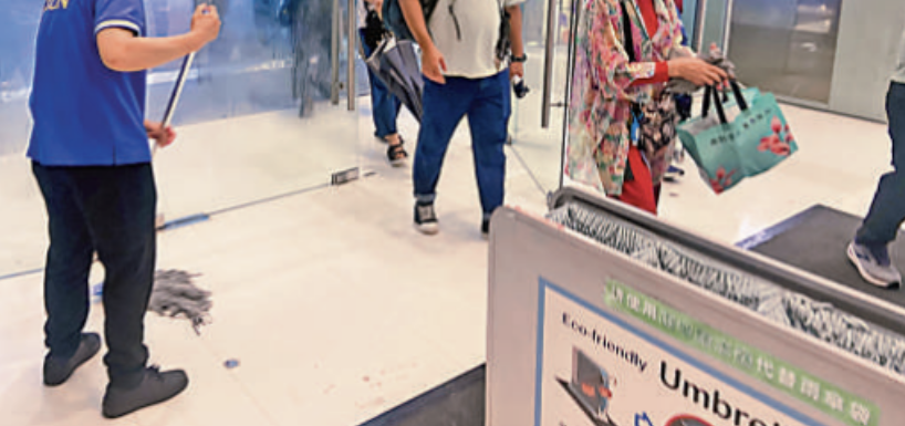 走塑不派雨伞袋 黄雨下商场地面湿滑 市民点睇?