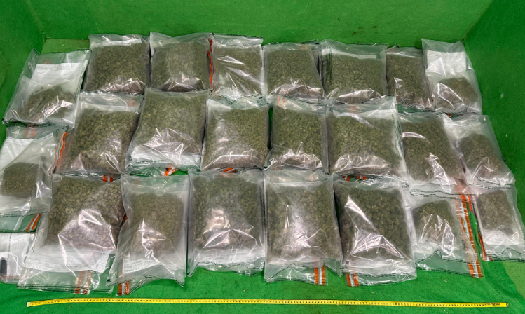 另外,香港海关昨日在香港国际机场侦破两宗行李藏毒的贩毒案件,检获约22.3公斤怀疑大麻花及约25克怀疑含有四氢大麻酚的软糖,估计市值约470万元。 一名33岁女旅客和一名25岁男旅客今日分别从泰国曼谷和清迈飞抵本港。 海关人员清关时,分别在他们的寄舱行李内发现24包共重约12.9公斤以及23包共重约9.4公斤的怀疑大麻花。 海关人员亦在男旅客的寄舱行李内检获约25克怀疑含有四氢大麻酚的软糖。 两名人士随即被捕。 案件仍在调查中。