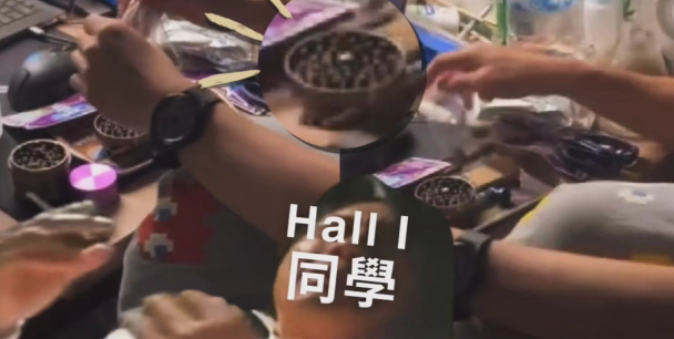 科大学生会编辑委员会今日(10日)引述匿名投稿称,一名现届社一宿生会干事在社交网站分享了一段在UG Hall I(学生宿舍一座)内吸食大麻的影片。据称,该片长约18秒,片中一名学生在宿舍房间内研磨疑似大麻的物品,并指“书桌上还摆放了数包疑是大麻以及吸食工具”。