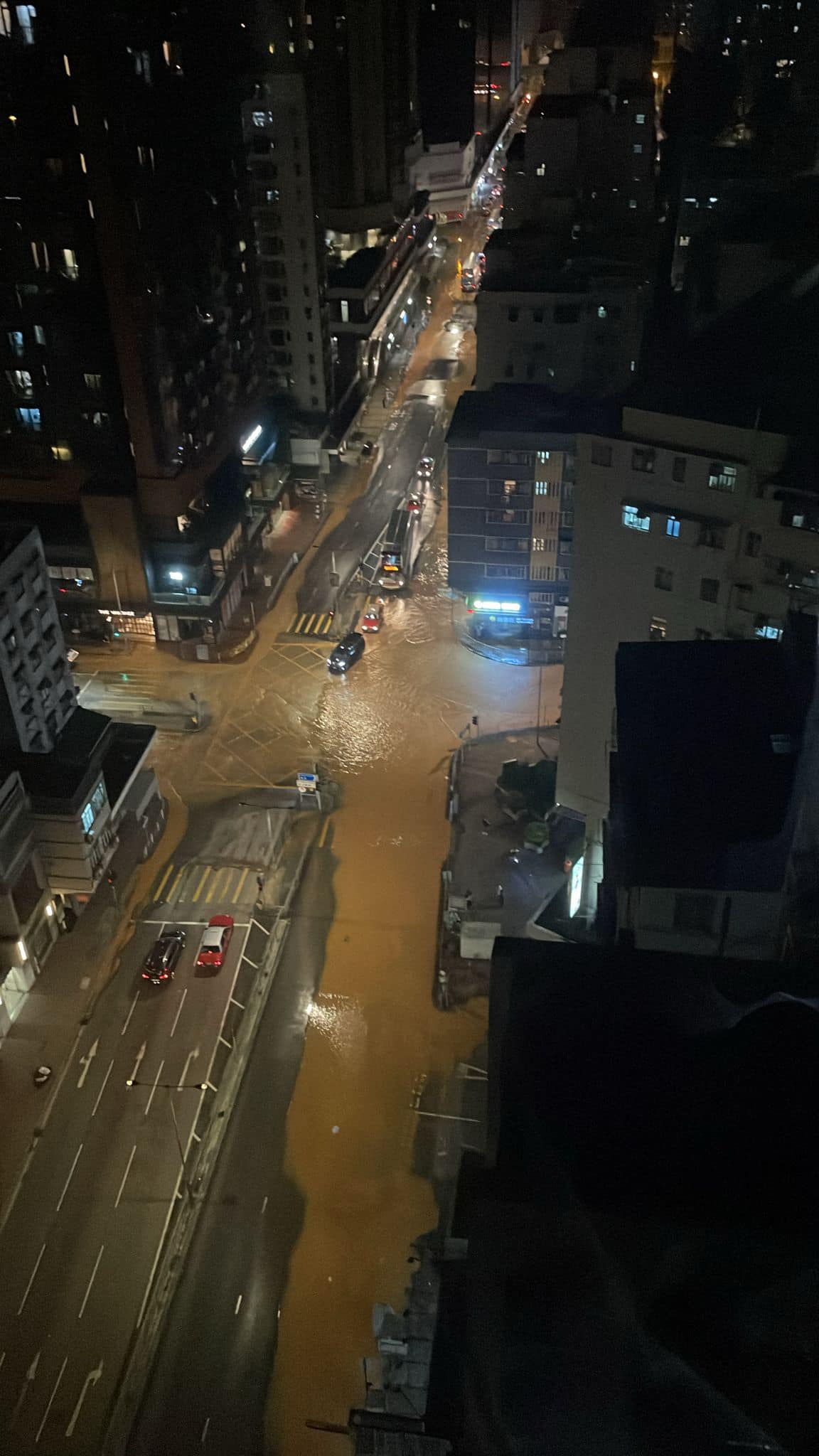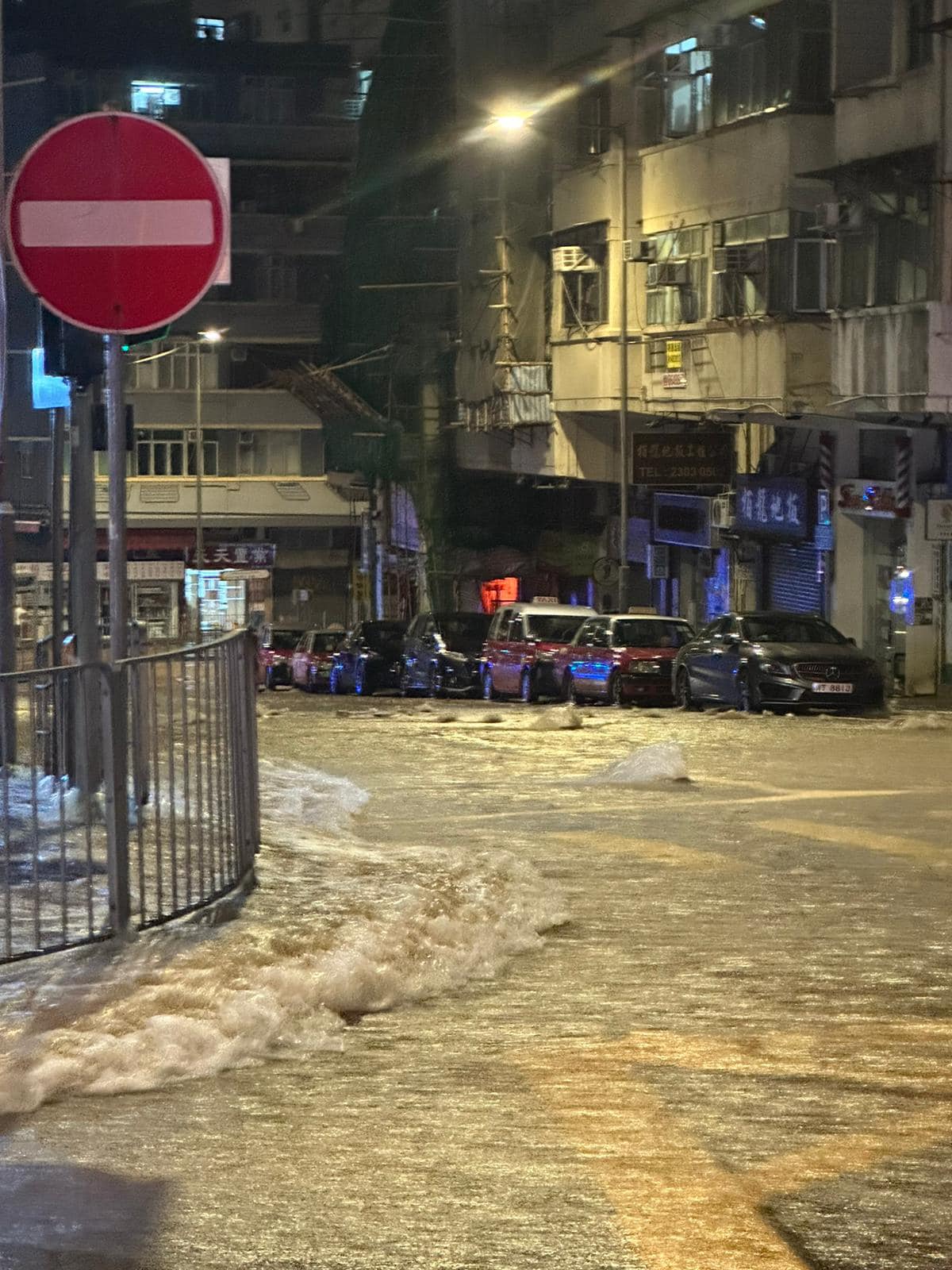 土瓜湾漆咸道北近新围街今日凌晨时分爆水管。(“香港突发事故报料区”群组图片)