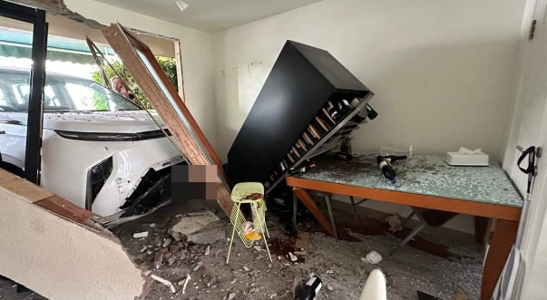 涉事独立屋屋主于社交平台上载现场图片,显示一辆白色Maxus MIFA 9七人车直衝进屋内,大门遭撞毁,大量石屎剥落,满地瓦砾。更有一个黑色红酒柜被撞至倾斜,数个酒樽从柜中跌下。