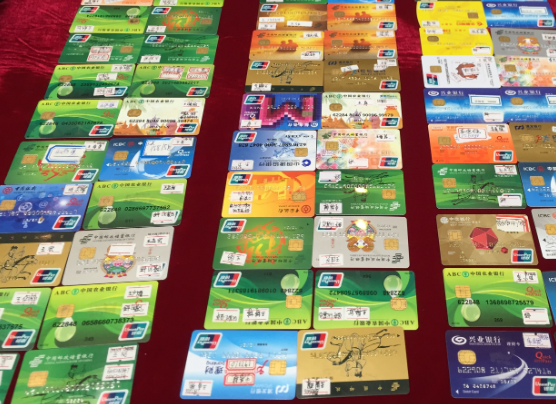 投资理财类诈骗已成为电信网络诈骗最常见的诈骗形式之一。图为警方缴获的涉诈骗案银行卡。
