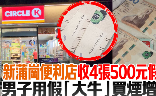 新蒲岗一间便利店收到4张怀疑500元假钞,警方将案列作“行使伪制纸币”,暂未有人被捕。
