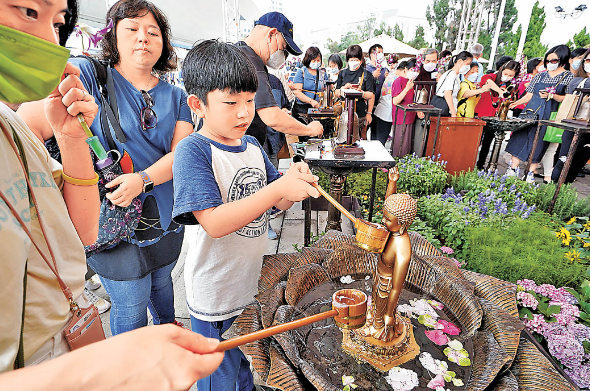 大批善信参与浴佛。