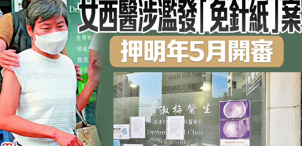 警方前年调查有私家医生涉嫌滥发“免针纸”,涉案的元朗女西医蔡淑梅被控16项不诚实取用电脑罪,另与丈夫合共被控7项洗黑钱罪。案件昨日在区域法院提讯,二人拟不认罪,案件押后至明年5月12日开审,两被告获准续保释。