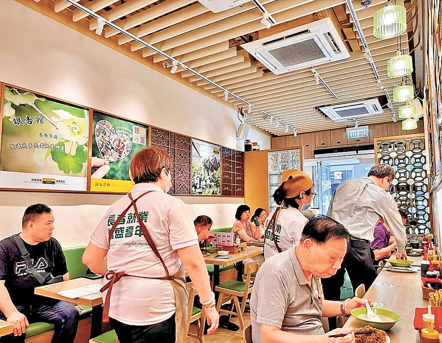 银杏馆在各区都有开设餐厅,专门聘请长者作员工为其一大特色。今次在深水埗开设全新冰室,并推出2元早餐、8元午餐及10元晚餐。“银杏冰室照顾基层温饱,提供8元起钵仔饭,可配上柱侯排骨、北菇滑鸡、榨菜牛肉等餸菜。”