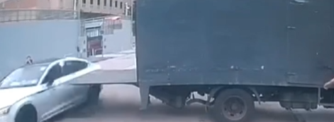 无收好尾板嘅货车就好似一把行走紧嘅刀,对行人同其他车辆构成危险!网上流传一条车cam影片,可见一辆密斗货车在天美道近天水围警署对开,越过双白线驶向一间幼稚园的门口,司机将车头部分停于行人路,车身后半部分则留在行车线上,然后停车放下尾板。未几,一辆私家车驶至收掣不及直撞,其左边倒后镜被尾板撞至粉碎。货车司机发现出事,走往尾板查看情况,而多名幼稚园学生的家长,亦纷纷步至路边围观。