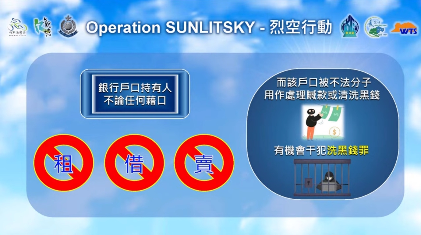 警方强调,除了真正在背后操作户口的犯罪集团成员外,傀儡户口持有人亦会干犯洗黑钱罪,不论租出、借出或卖出户口以用作清洗黑钱用途同属犯法。 根据香港法例第455章《有组织及严重罪行条例》,任何人如知道或有合理理由相信任何财产为犯罪得益,而依然处理该财产,就已经干犯洗黑钱罪行,一经定罪,最高可判监禁14年及罚款500万元。