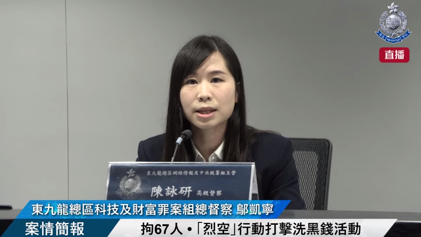 邬凯宁表示,行动打击以虚拟银行户口作清洗黑钱的犯罪得益。 (警方直播图片)