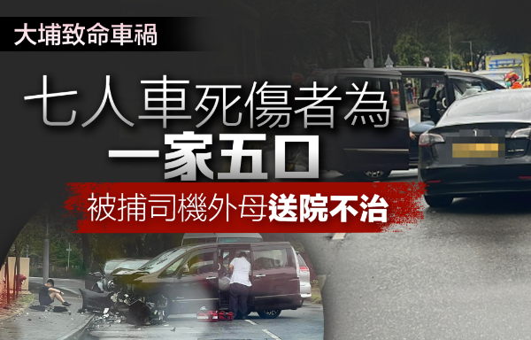 大埔致命车祸|七人车死伤者为一家五口 被捕司机外母送院不治