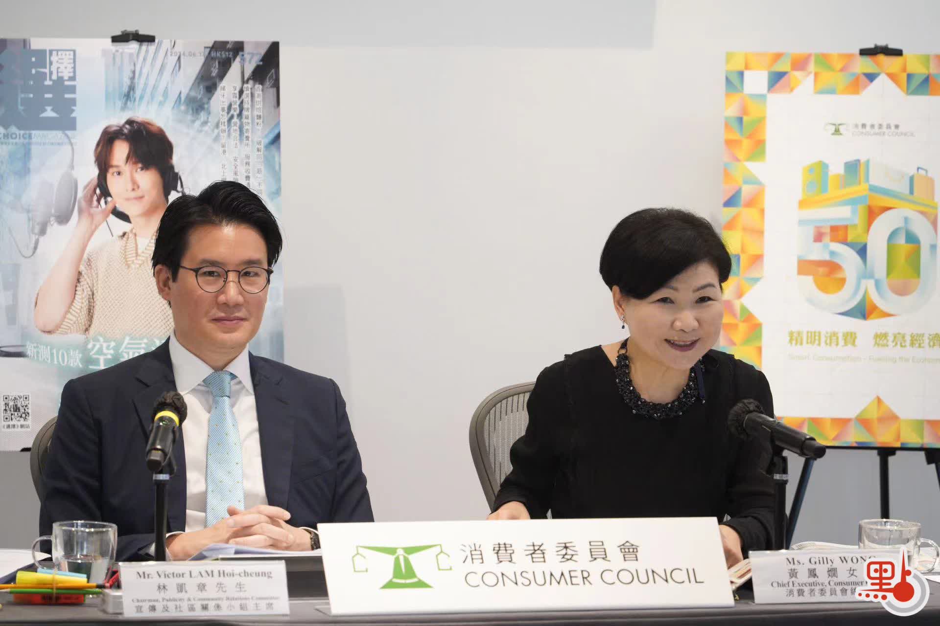 消委会总干事黄凤娴(右)及宣传及社区关係小组主席林凯章(左)见传媒。