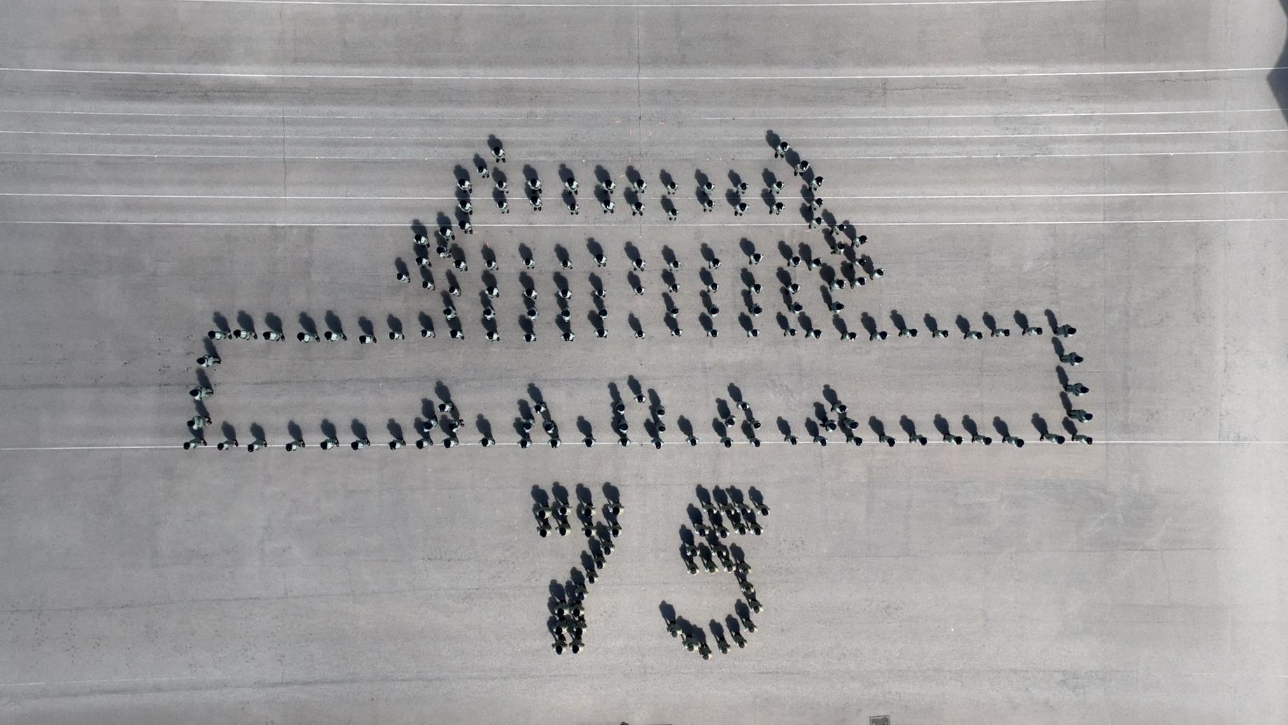 会操队伍组成天安门城楼图案,庆祝今年中华人民共和国成立75周年。(政府新闻处)