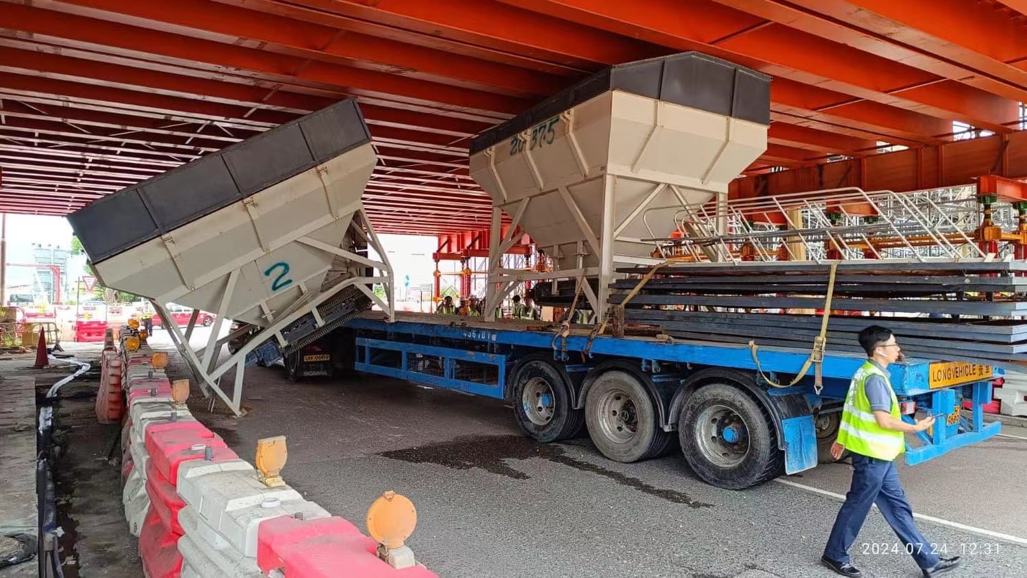 机场南交汇处拖架撞桥。(FB图片)运输署公布,因交通意外机场南交汇处的部分行车线现已封闭,驾驶人士只可使用馀下行车线行车,受影响九巴及龙运巴士路线须改道行驶。现时上址交通繁忙。