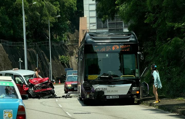 东涌发生交通意外。今午(25日)1时18分,东涌翔东路近愉景湾隧道出口对开,一辆的士意外与一辆单层巴士相撞,据报的士上两人受伤,其中有人被困,而巴士上亦有3名乘客不抵衝击力撞伤。