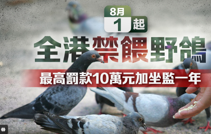 《2024年野生动物保护(修订)条例》将于明日(8月1日)起正式生效,新规扩展现行禁止喂饲野生动物的规定至涵盖野鸽,并将违反禁止喂饲规定的最高刑罚,由罚款1万元提升至罚款10万元及监禁一年。新条例亦引入5000元定额罚款,以及扩大政府执法人员的人选类别。