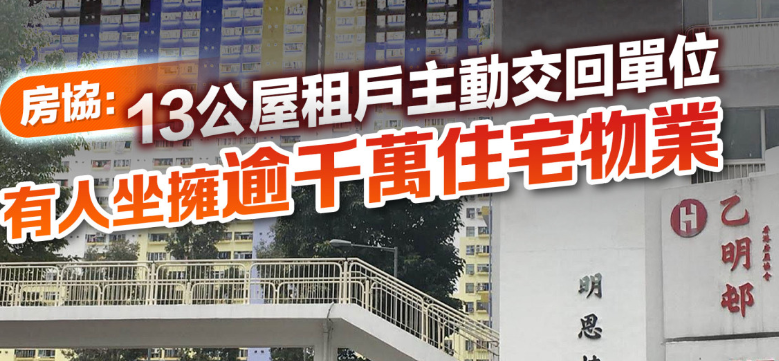 房协:13公屋租户主动交回单位 有人坐拥逾千万住宅物业