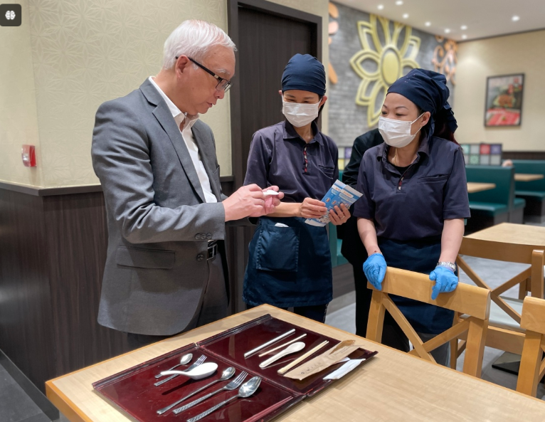 谢展寰指,近日环保署不断提醒业界,要为适应期届满作好准备。近月来,连锁食肆的业界在不同场合表示,他们的外卖顾客约8成已选择不需要外卖餐具。环保署进行巡查食肆时更发现约有3成已不再提供任何外卖餐具,这些改变都表明很多市民外卖都不再依赖即弃塑胶餐具,食肆亦相信不提供外卖餐具也不会严重影响生意,有些更表明参与推动减少即弃用品。