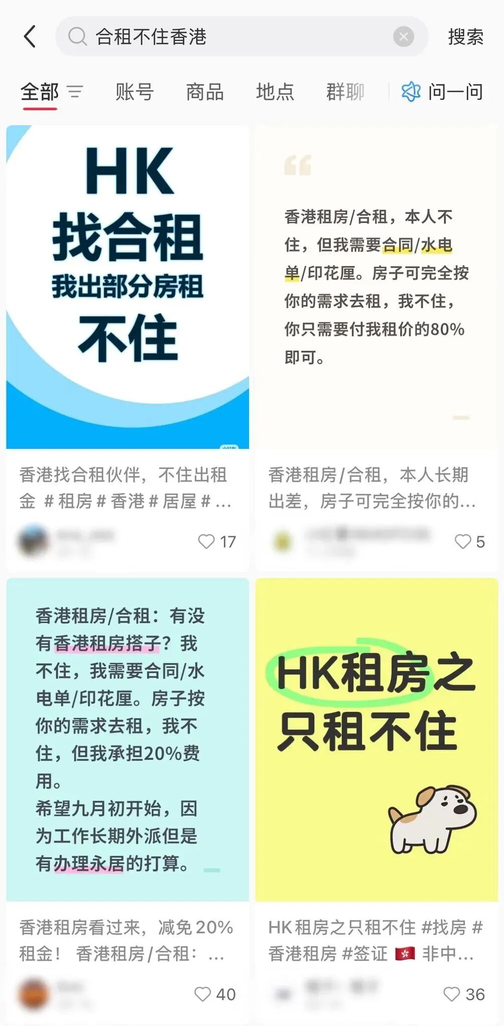 • 社交平台招募 “假合租”,规避居住核查:在小红书、抖音等平台,以 “香港合租不住”“受养人租房配合” 为关键词搜索,大量中介帖子赫然在目。