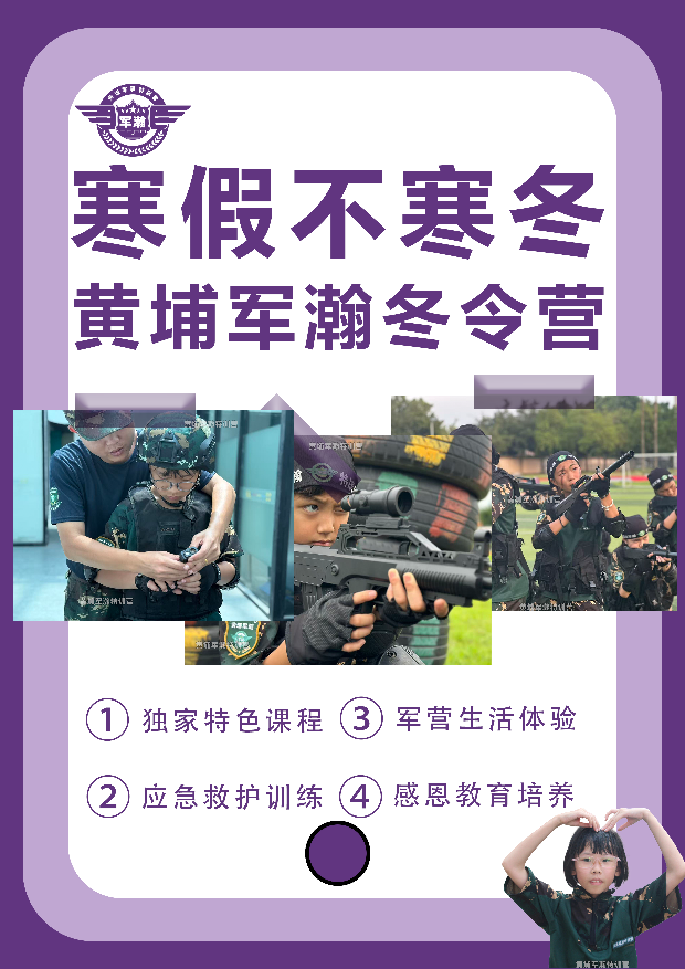 拒绝平庸圣诞,解锁硬核成长!黄埔军瀚军事圣诞营,专为6-16岁青少年量身打造! 不用羡慕“别人家的娃”,来这里,娃也能快速蜕变: 军事特训磨毅力,告别拖延懒散坏习惯; 实战体验练胆量,真人CS+战术匍匐超刺激; 应急技能傍身,消防逃生+急救包扎全学会; 特色活动暖人心,军事电影+感恩分享有温度 圣诞营营期:5天卓越体验班(两期可选):12.22-12.27 / 12.28-12.3110天少年励志营:12.22-12.31 黄埔专属营地,退役老兵带教,24h生活老师全程陪护,家长群实时动态更新,安全感拉满! 划重点!一价全含无套路,这个圣诞,送娃一份成长大礼,让他从“躺平党”变身“飒爽小军人”